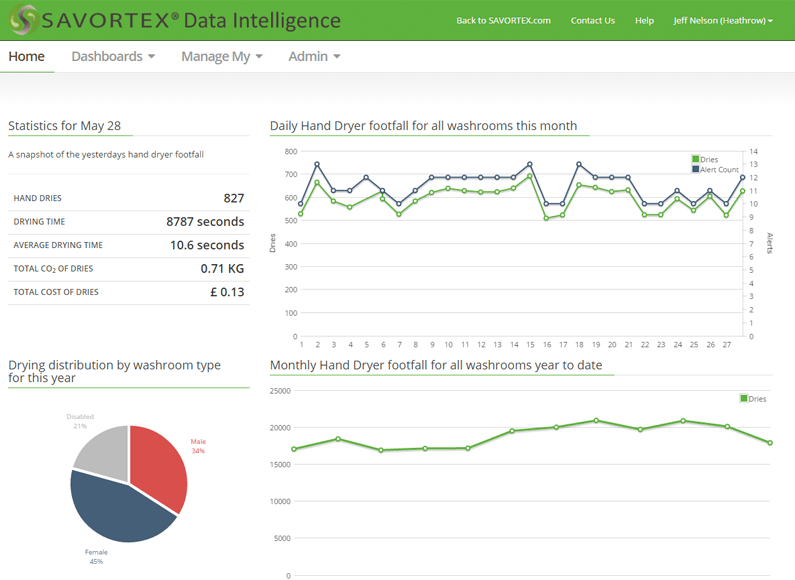 Remember Syed Ahmed, from series 2 of the Apprentice back in 2006? Probably not, but he’s apparently raised some big money to get his hand dryer off the ground. Unlike normal hand dryers, this one is connected to the internet – so you can get reports on its usage, with nice graphs and stuff. Like this: